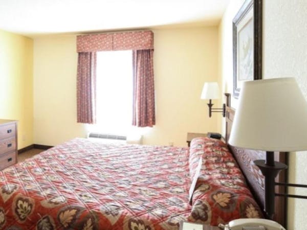 This spacious, non-smoking suite contains a luxurious king-sized bed, two 32" flat-screen wall-mounted HDTVs, easy to operate alarm clock/radio, a comfortable desk and workspace, a plush sofa lounge chair. The complimentary wireless high-speed internet access will help you stay connected while on the road. You'll also enjoy the convenience of having a coffee maker, , wall-mounted hair dryer and iron/ironing board in your room. In the bathroom you'll enjoy fluffy towels, and curved shower rod that allows more light and space in the shower